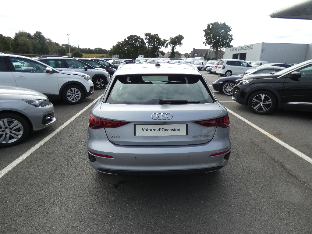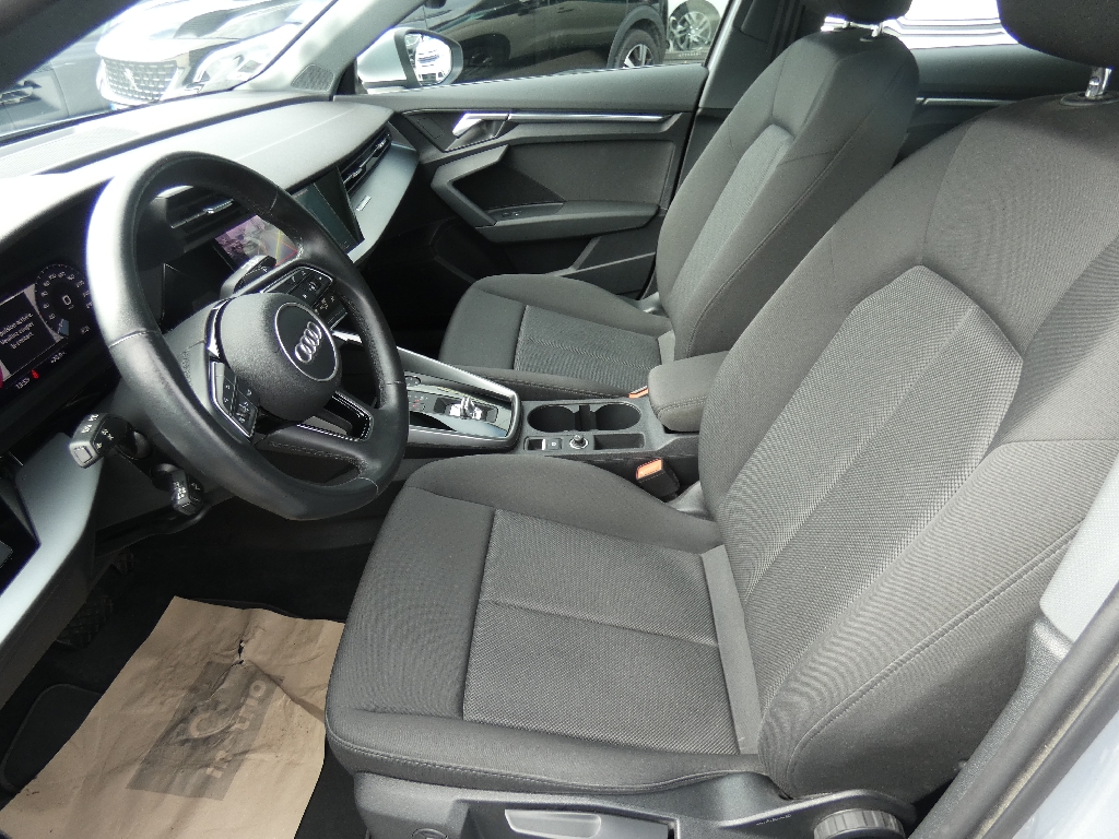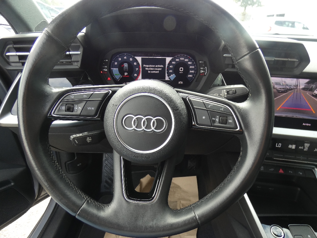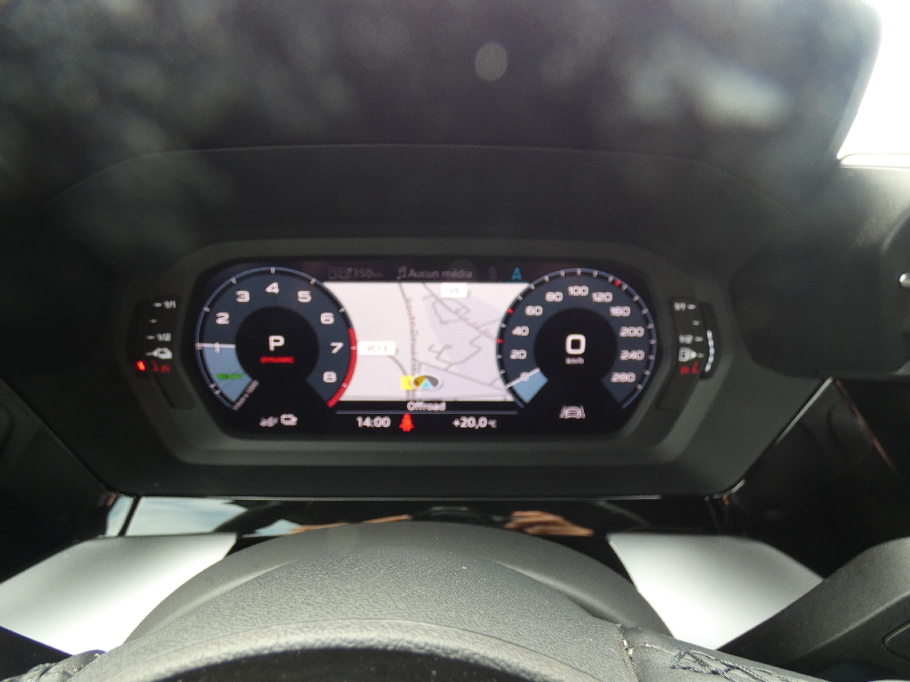 6 HP (passifs), Accoudoir central coulissant en longueur, avec inclinaison réglable, Airbags latéraux à l'AV et système d'airbags de tête, Alerte de sortie de voie, Appel d'urgence Audi connect, Applications décoratives effet spécial soie, Audi Connect Appel d?urgence & Service, Audi connect et assistance en ligne, Audi Drive Select, Audi park assist : cherche à l?aide de capteurs à ultrasons les places de stationnement (bataille et créneau) appropriées le long de la chaussée, Audi pre sense front, Boîtiers de rétroviseurs extérieurs dans la couleur de la carrosserie, Câble de recharge HH Type E (8 A), Câbles de recharge pour téléphone portable compatibles Apple et Android, Chargeur mode 3, Ciel de pavillon en tissu, Clé à fréquence radio (sans safelock), Climatisation automatique confort 2 zones, Combiné d?instruments numérique Digital Cockpit 10,25", Commande de désactivation de l'airbag passager AV, Contrôle de la pression des pneus, Détecteur de pluie et de luminosité, Direction assistée électromécanique, asservie à la vitesse, Dispositif de limitation de vitesse, Dossier de banquette AR rabattable en deux parties 40:60, Eclairage intérieur, Ecrous de roues antivol, Extérieur classic avec calandre Noir mat et diffuseur Noir mat, I-Size et Top Tether pour les sièges AR extérieurs, Interface Bluetooth, Jantes en alliage léger 16'' style "Aero" à 5 bras, Jantes en alliage léger 16'' style "Aero" à 5 bras 7,5 J x 16", pneus 205/55 R16, Kit réparation, MMI Radio Plus, Outillage de bord, Pare-brise à vitrage acoustique, Pare-brise avec bandeau pare-soleil gris, Peinture vernie, Phares AV à LED (feux de croisement, Phares AV base, Préparation pour appareil de navigation, Prise industrielle CEE 32 A / 230 V, Rappel de ceinture de sécurité avec dispositif AR de détection d?occupation du siège, Réception radio numérique (DAB), Récupération d'énergie, Régulateur de vitesse, Régulateur de vitesse plus limiteur de vitesse, Rétroviseur intérieur jour/nuit manuel, Rétroviseurs extérieurs réglables électriquement et dégivrants, Sécurité enfant électrique, Sécurité enfants, Sellerie tissu "Dynamique", Sellerie tissu "Index", Sièges AV classiques, Sièges AV réglables manuellement, Système Start & Stop avec récupération d'énergie au freinage, Tapis de sol AV/AR, Trousse de secours, triangle de présignalisation et 2 vestes de sécurité, Volant cuir multifonctions Plus 3 branches avec palettes de commande au volant