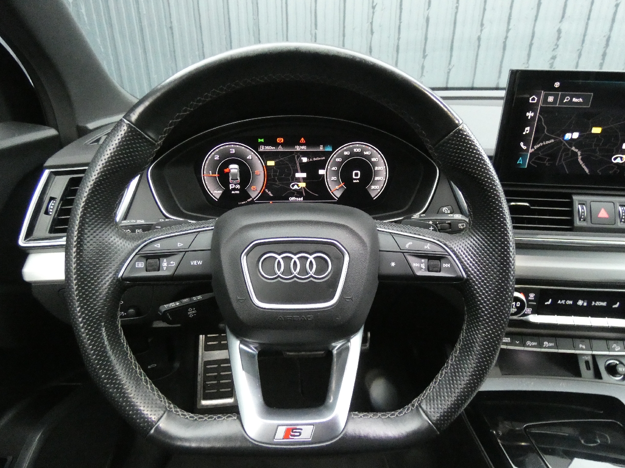 2 interfaces de charge USB pour les passagers AR sur la console centrale AR, 8 HP, Accoudoir central AV, Accoudoir central confort AV, Affichage de contrôle de pression des pneus, Affichage de perte de pression des pneus, Airbags grand volume pour conducteur et passager AV, Airbags latéraux AV avec système d'airbags de tête, Antipatinage ASR pour une motricité optimale, empêche le patinage des roues motrices, Appel d'urgence avec service Audi connect + commande de véhicule, Applications décoratives en Aluminium brossé mat, Appui lombaire à 4 axes pour les sièges AV, réglages électriques, horizontal et vertical, Audi connect avec carte SIM intégrée (e-SIM) et licence d'utilisation pour 3 ans, Audi drive select, Audi Hold Assist, Audi hold assist: maintien le véhicule à l'arrêt en côte comme en descente, Audi Parking System Plus, Audi Parking System Plus: Système accoustique et visuel d'aide au stationnement AV et AR, Audi Phone Box light, Audi Pre-Sense City, Audi smartphone interface, Audi Sound System avec 10 HP, Audi Virtual Cockpit Plus, Augmentation de la capacité du réservoir à carburant à 70 litres, Avertissement de sortie de voie, Baguette enjoliveuse en argent aluminium mat, Banquette 3 places avec appuie-tête en L réglables en hauteur Dossier de banquette arrière rabattable en trois parties 40 : 20 : 40 ou complètement, Banquette AR plus, Barres de toit transversales en aluminium anodisé, Blocage électronique de différentiel EDS, Câbles de recharge pour téléphone portable, compatibles iPhone et Android, Calandre spécifique S line laquée en noir mat et entourage en aluminium argent mat, Caméra de recul, Caméra multifonction, Ceintures de sécurité automatiques à 3 points pour tous les sièges, Châssis Sport S, Ciel de pavillon en Tissu Noir, Clé Confort (Keyless entry) + Keyless go, Climatisation automatique Confort 3 zones, Coffre à ouverture et fermeture électriques, Colonne de direction de sécurité, Commande de désactivation de l?airbag passager AV, Contrôle électronique de stabilisation ESC, Détecteur de pluie et de luminosité, Diffuseur AR en Noir à grain mat, Diffuseur spécifique S line en noir mat avec canules d?échappement de style chromées, Direction assistée électromécanique, Dispositif anti-erreur de carburant, Eclairage intérieur AV et AR, Ecrous de roues antivol, Emblème S et surpiqûres contrastées spécifiques S sur le volant, Emblème S line sur les ailes AV, Extensions de bas de caisse et passages de roues en peinture intégrale couleur carrosserie, Feux AR à LED, Finition extérieure S line, Fixation pour sièges enfants ISOFIX et Top Tether pour les sièges extérieurs AR, Grilles d?entrée d?air latérales en noir mat grainé avec insert en argent aluminium mat, Hayon de coffre assisté électriquement pour l'ouverture et la fermeture, Identification, Identification du modèle selon le nouveau marquage de puissance, Interface Bluetooth, Interfaces de charge USB pour les passagers AR, Jantes en aluminium coulé en style étoile à 5 bras 8Jx18, pneus 235/60 R18, Keyless entry & go : Clé Confort (keyless entry) + Touche Start/Stop pour arrêt et démarrage du moteur (keyless go), Lave-phares haute pression, Motorisations avec technologie hybride léger (Mild Hybrid), Moulures de seuil avec insert en aluminium AV, éclairées, avec inscription S, Moulures de seuil avec insert en aluminium dans les ouvertures des portières AV, Moulures de seuil de portes éclairées avec insert en aluminium AV/AR et inscription "S", Navigation MMI plus avec MMI touch, Outillage de bord (sans cric), Pack Brillance Extérieur, Pack Eclairage, Pack Eclairage d'ambiance, Pack Extérieur Brillance, Pack Rangement et Coffre, Pare-chocs spécifiques S AV/AR, Pare-soleil côtés conducteur et passager AV, Passage de roue contrasté en plastique Noir grainé, Phares Matrix LED, feux AR à LED, Préparation pour crochet d'attelage, Protection antidémarrage électronique, Protection de pare-chocs en acier inoxydable, Quattro transmission intégrale permanente, Rampes de pavillon en aluminium anodisé, Réception radio numérique DAB, Recommandation de repos, Récupération d'énergie au freinage, Régulateur de vitesse incluant limiteur de vitesse, Repose-pied et pédalier en acier inoxydable, Réservoir d'AdBlue à 24 litres, Rétroviseur intérieur jour/nuit automatique sans encadrement (Frameless), Rétroviseurs extérieurs avec clignotants à LED intégrés couleur carrosserie, Rétroviseurs extérieurs réglables et escamotables électriquement, Rétroviseurs extérieurs réglables, S tronic : boîte séquentielle 7 vitesses à double embrayage avec commande électrohydraulique, Sécurité enfants manuelle, Sellerie mixte Cuir/Tissu Séquence S line, Sièges AV réglables manuellement en hauteur et en profondeur ; réglage manuel des appuie-tête en hauteur, Sièges AV Sport, Sièges Sport à l'AV, Spoiler de toit AR S line, Surfaces d?accentuation façon verre en Noir, Système d'information du conducteur avec écran couleur haute résolution de 7", Système d'information du conducte