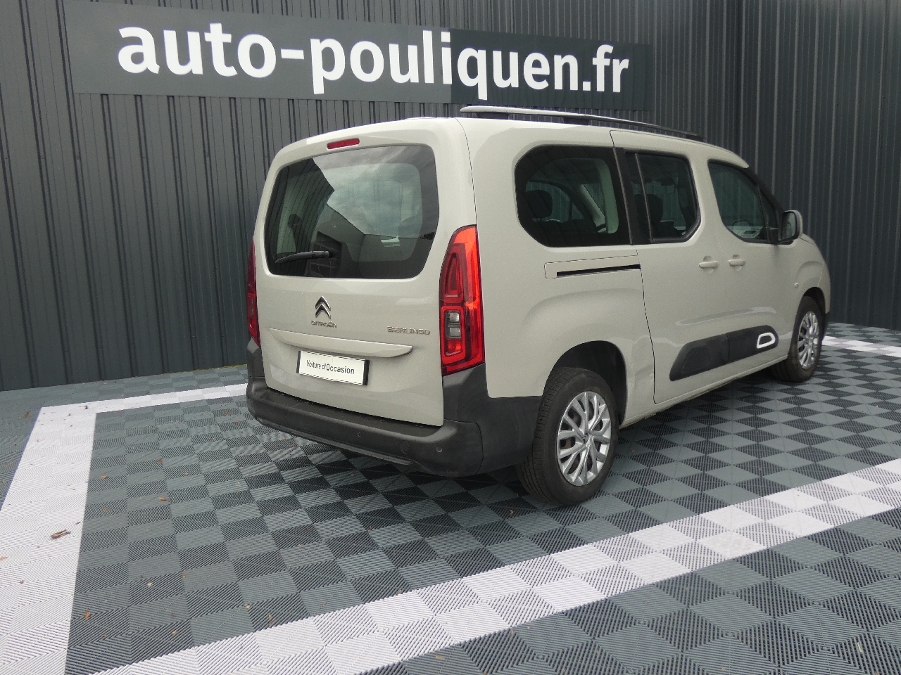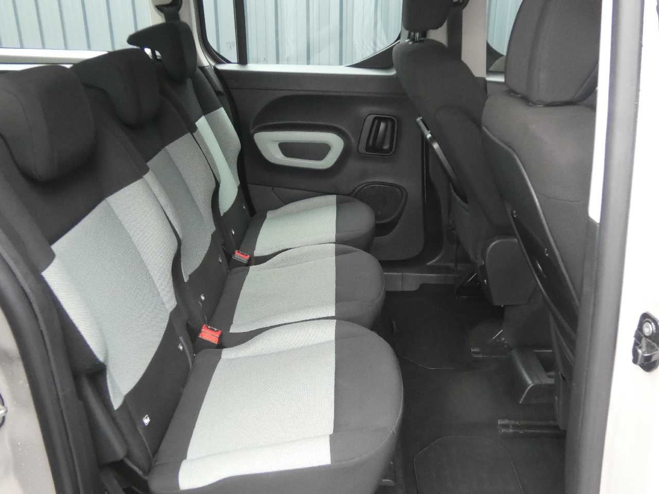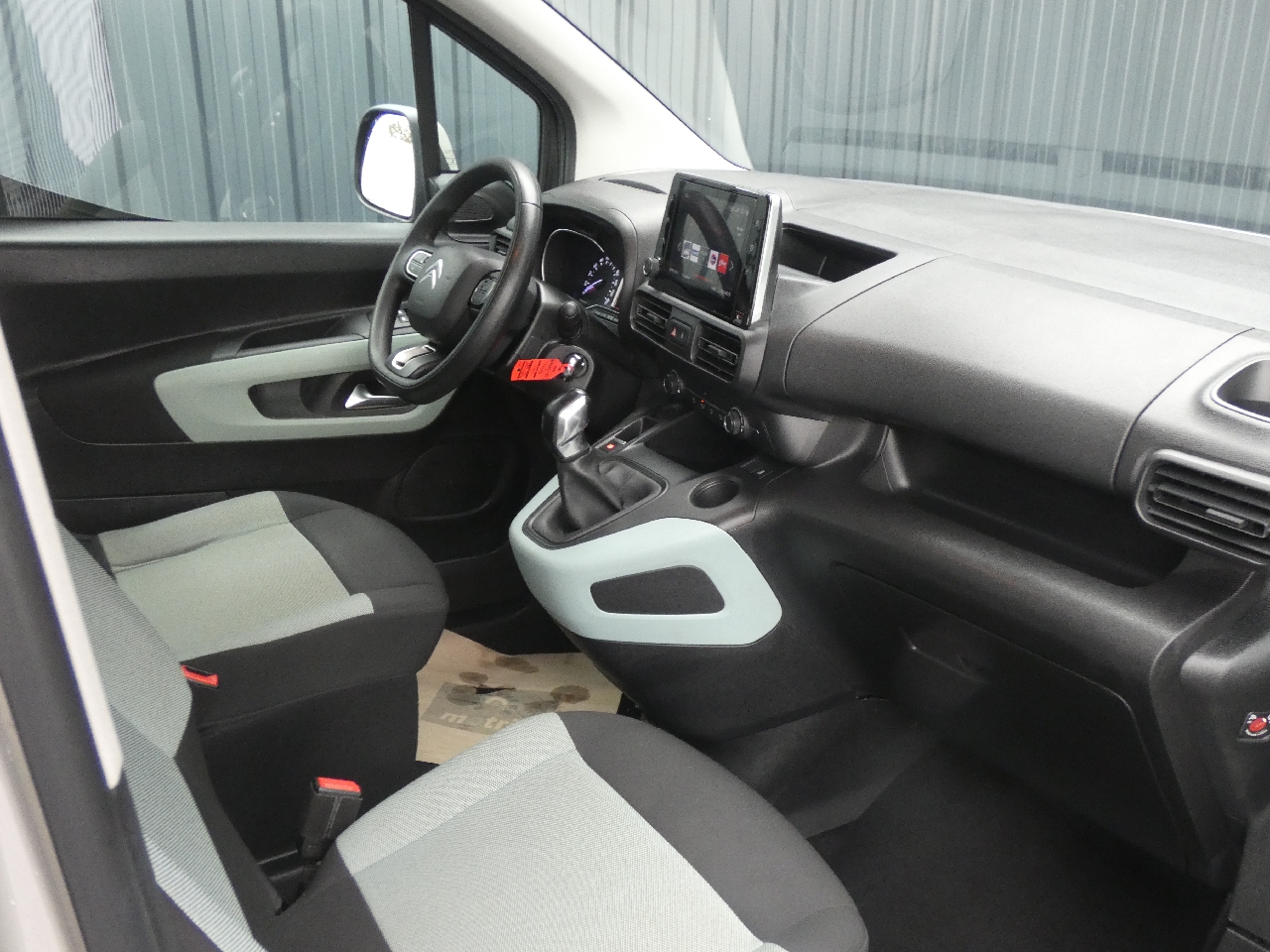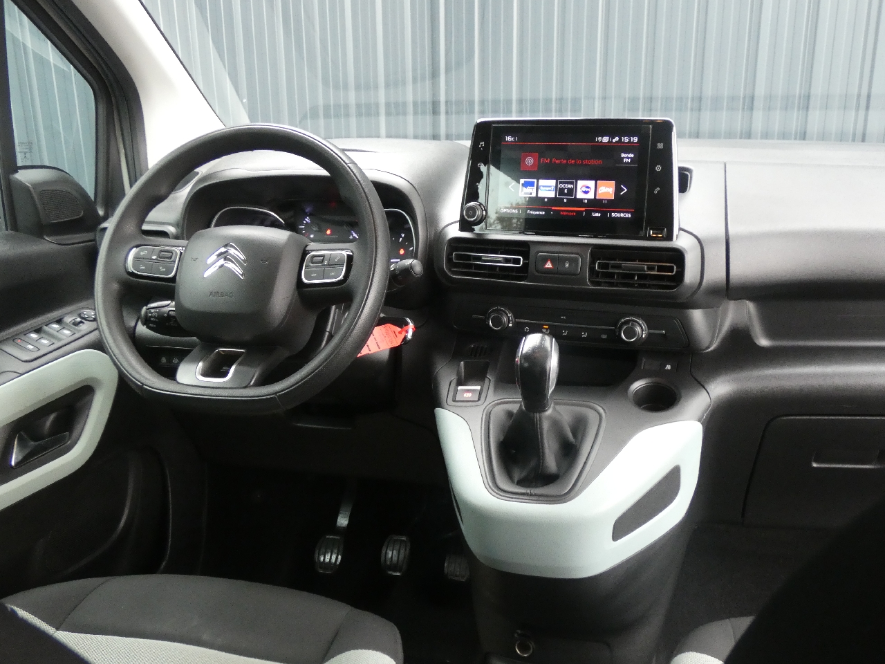 2 portes latérales coulissantes, 3 fixations Isofix en rang 2, 3 sièges AR indépendants escamotables, ABS, AFU, ASR et ESP, ABS, AFU, ESP, ESC, ASR, Accoudoirs centraux AV, Aide au démarrage en pente, Aide au stationnement AR, Airbags frontaux AV, latéraux AV et rideaux, Allumage automatique des feux de croisement, Aumônières sur dossiers des sièges AV, Banquette AR escamotable 2/3 - 1/3, Barres de toit longitudinales couleur Noir Brillant, Boîte à gants Top Box réfrigérée, Citroën Connect Radio sur tablette tactile 8" avec 1 prise USB de recharge, Climatisation manuelle, Condamnation centralisée avec 2 PLIP HF, Coques de rétroviseurs extérieurs couleur caisse, Détecteur de sous-gonflage, Enjoliveurs 16" Twirl avec centres de roues noirs, Essuie-vitre AV automatique, Essuie-vitre AV Magic Wash, Feux diurnes à LED, Frein de stationnement électrique, Garnissage Tissu Mica Green, Kit de dépannage provisoire de pneumatiques, Kit mains libres Bluetooth et prise USB, Lève-vitres AV électriques, Lève-vitres AV et AR (rang 2) électriques et séquentiels, Mirror Screen Compatible avec Android Auto et Apple CarPlay?, Pack Color White, Pack Color White (décors d'Airbump et de projecteurs antibrouillard colorés), Pack Safety, Pavillon avec capucine, Poignées de portes extérieures couleur caisse, Projecteurs antibrouillard avec éclairage statique d'intersection, Régulateur - limiteur de vitesse, Rétroviseurs extérieurs électriques et chauffants, Rétroviseurs extérieurs rabattables électriquement, Sécurité enfants électrique, Siège conducteur avec réglage lombaire et accoudoir, Siège conducteur réglable en hauteur, Siège passager AV escamotable, Système audio 6 HP avec spacialisation du son, Tablettes aviation au dos des sièges AV, Tendelet cache-bagages, Tiroirs sous sièges passager, Trappes de rangement sous plancher rang 2, Volant mousse réglable en hauteur et en profondeur