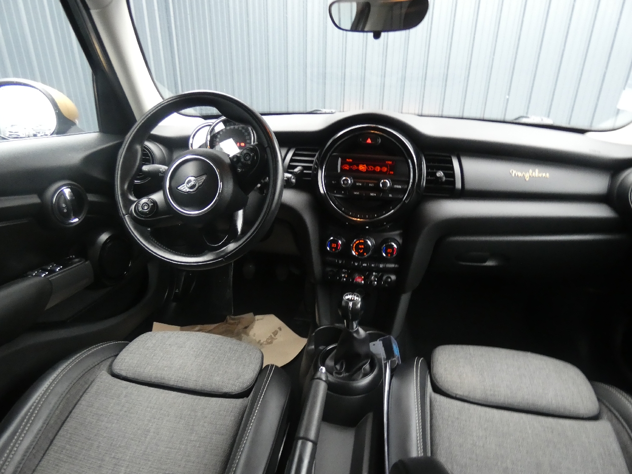 2 HP et 2 woofers, 2ème clé radiocommandée, 3ème feu de stop, 4 Appuis-têtes réglables en hauteur, ABS, y compris assistance au freinage d'urgence et contrôle de freinage en courbe, Airbags de tête, Airbags frontaux pour conducteur et passager AV, Airbags latéraux AV, intégrés au dossier de siège AV, Anti-démarrage électronique, Autoradio MINI AM/FM: avec prises AUX-IN et port USB, écran 4 lignes, Baguettes de seuil de porte avec inscription de la motorisation façon métallique, Banquette AR 3 places rabattable, Becquet AR de toit, Boîte manuelle 6 rapports, Buses d'aération cerclées de chrome, Buses de lave-glace et rétroviseurs extérieurs dégivrants, Calandre au contour chromé avec lamelles noires, Chrome Line extérieur, Ciel de pavillon Satellite Grey, Clignotants blancs, Climatisation automatique bi-zone, Colour Line Carbon Black, Contrôle Dynamique de stabilité DSC avec DTC et EDLC, Coques de rétroviseurs extérieures noires, Coques de rétroviseurs extérieurs couleur carrosserie, Crash Sensor activation automatique en cas d'accident: déverrouillage des portes, Détecteur de pluie et allumage automatique des projecteurs, Ecrous de roues antivol, Feux de stop dynamiques, Finition Chili, Fonction "Follow me home", éclairage d'accompagnement, Fonction profile: import/export des données et réglages véhicule, Fonction sécurité piéton avec capot actif, Fonction Start&Stop et démarrage sans clé, Freins à disques AV et AR ventilés à l'AV, Indicateur de pressions des 4 pneus et avertisseur automatique en cas de perte de pression d'au moins 25% sur un des pneus, Isofix sur les 2 sièges AR, Jantes alliage 6.5Jx16" (195/55 R16) design "Loop Spoke", Jantes alliage 6.5Jx16" (195/55 R16) design "Victory Spoke", Kit de réparation de pneus, Lève-vitres électriques AV avec commande à impulsion et protection anti-pincement, Lève-vitres électriques AV et AR avec commande à impulsion à l'AV et protection anti-pincement, MINI Mobility System, Ordinateur de bord multifonctions, Ouïes latérales noires avec répétiteurs de clignotants orange intégrés, Ouverture et fermeture à distance des vitres et du TOE si équipé, Pack Chili, Pare-chocs AV/AR dans la couleur de la carrosserie, Poignée d'ouverture de coffre teinte noir, Poignées de portes chromées, Poignées intérieures de portes chromées, Porte-boissons AV (x2), Prétentionneurs de ceintures AV, Prise 12V sous la console centrale, Projecteurs antibrouillard AV, Projecteurs AV et feux AR au contour chromé, Réglage électrique de la portée des projecteurs, Réglage en hauteur du siège passager AV, Régulateur de vitesse avec fonction freinage, Rétroviseurs extérieurs à réglage électrique, Siège conducteur réglable en hauteur, Sièges AV Sport, Sièges AV Sport avec Sellerie Tissu/Cuir "Diamond", Sortie d'echappement simple côté gauche, Surveillance de l'éclairage extérieur, Surveillance de la pression des pneumatiques, Système de maintenance intelligent Condition Based Service (CBS), Système mains-libres Bluetooth niveau 1, Tapis de sol en velours, Teinte d'habitacle Carbon Black, Toit couleur carrosserie, Touches multifonctions sur le volant avec régulateur de vitesse, Trappe à carburant côté droit, Triangle de présignalisation avec kit de premiers secours, Verrouillage automatique des portes dès 16 Km/h, Verrouillage centralisé des portes, du coffre et de la trappe à carburant, Vitre AR chauffante avec essuie-glace, Volant 2 branches, Volant Sport gainé Cuir