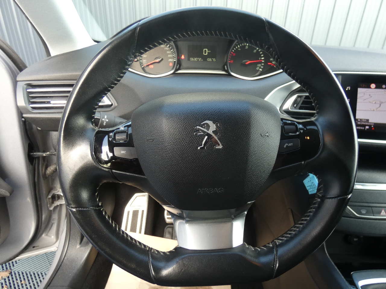 Accoudoir central AV avec rangement, Aide au démarrage en pente, Aide au stationnement AR, Air conditionné automatique bi-zone avec filtre à charbon actifs, Airbags frontaux, latéraux et rideaux, Alerte visuelle et sonore de débouclage des ceintures de sécurité AR, Alerte visuelle et sonore de non bouclage et de débouclage des ceintures de sécurité AV, Allumage automatique des feux de détresse en cas de forte décélération, Allumage automatique des feux de détresse en cas de forte décélération ou de choc, Allumage diurne des feux AR, Appuis-tête à sécurité optimisée réglables en hauteur sur les sièges conducteur et passager AV ainsi que sur les places latérales AR, Avertisseur de temps de conduite, Badge Style sur les ailes AV, Banquette AR rabattable 1/3-2/3, Béquet AR couleur caisse, Boîte à gants éclairée et réfrigérable, Boitiers de rétroviseurs extérieurs noirs teintés masses, Calandre avec jonc périphérique chromé et ailettes Noires, intégrant le lion PEUGEOT, Ceintures de sécurité AR centrales sans limiteur d'effort, 3 points, Ceintures de sécurité AR latérales avec limiteur d'effort, Ceintures de sécurité AV à enrouleur pyrotechnique, Combiné tête haute, Combiné tête haute, 2 cadrans, matrice blanche, Commande de verrouillage à distance (1 plip), Contrôle dynamique de stabilité ESP avec antipatinage électronique ASR, Détection de sous-gonflage indirecte, Ecran Tactile capacitif 9,7", radio, Bluetooth, USB, 6HP, Essuie-vitre AR avec enclenchement automatique en marche AR, Feux AR à LED avec masque noir, Feux diurne AR à LED, Fixations ISOFIX aux places latérales AR, Fonction Mirror Screen (Apple Carplay / Android Auto / MirrorLink), Garnissage confort Tissu Mistral avec surpiqures bleues, Garnissage Tissu Meco Mistral avec surpiqures bleues, Jantes alliage 16" Pure TOPAZE, Kit de dépannage de pneumatique, Lève-vitres AR électriques et séquentiels avec antipincement, Lève-vitres AV électriques et séquentiels avec antipincement, Lunette AR chauffante, Miroirs de courtoisie éclairés, Navigation connectée 3D avec reconnaissance vocale, Pack Look extérieur, Pack Visibilité, Peinture opaque, Peinture opaque Gris Hurricane, PEUGEOT i-Cockpit, Poches aumonières au dos des sièges AV, Poignées de portes extérieures teintées masses, Pommeau de levier de vitesses et de frein à main en cuir, Prise 12V AV, Prise 12V x 2 AR, Prise USB, Projecteurs antibrouillards halogènes, Projecteurs elliptiques halogenes avec feux diurne intégré, Rangement dans le coffre, spécifique pour triangle de pré-signalisation et trousse de secours, Régulateur et limiteur de vitesse, Régulateur et limiteur de vitesse programmable, Rétroviseurs extérieurs électriques dégivrants, Rétroviseurs extérieurs rabattables électriquement, Sécurité enfants électrique des vitres AR, Seuils de portes AV en inox et marquage STYLE, Siège conducteur mécanique avec réglage lombaire, Siège conducteur mécanique réglable en hauteur, Siège passager AV mécanique réglable en hauteur, Système d'antiblocage des roues ABS avec répartiteur électronique de freinage REF et assistance au freinage d?urgence AFU, Verrouillage automatique de tous les ouvrants en roulant, Verrouillage centralisé des portes avec plip, Vitres latérales AR et lunette AR surteintées, Volant réglable en hauteur et en profondeur, Volant Sport Cuir pleine fleur avec commandes sur volant