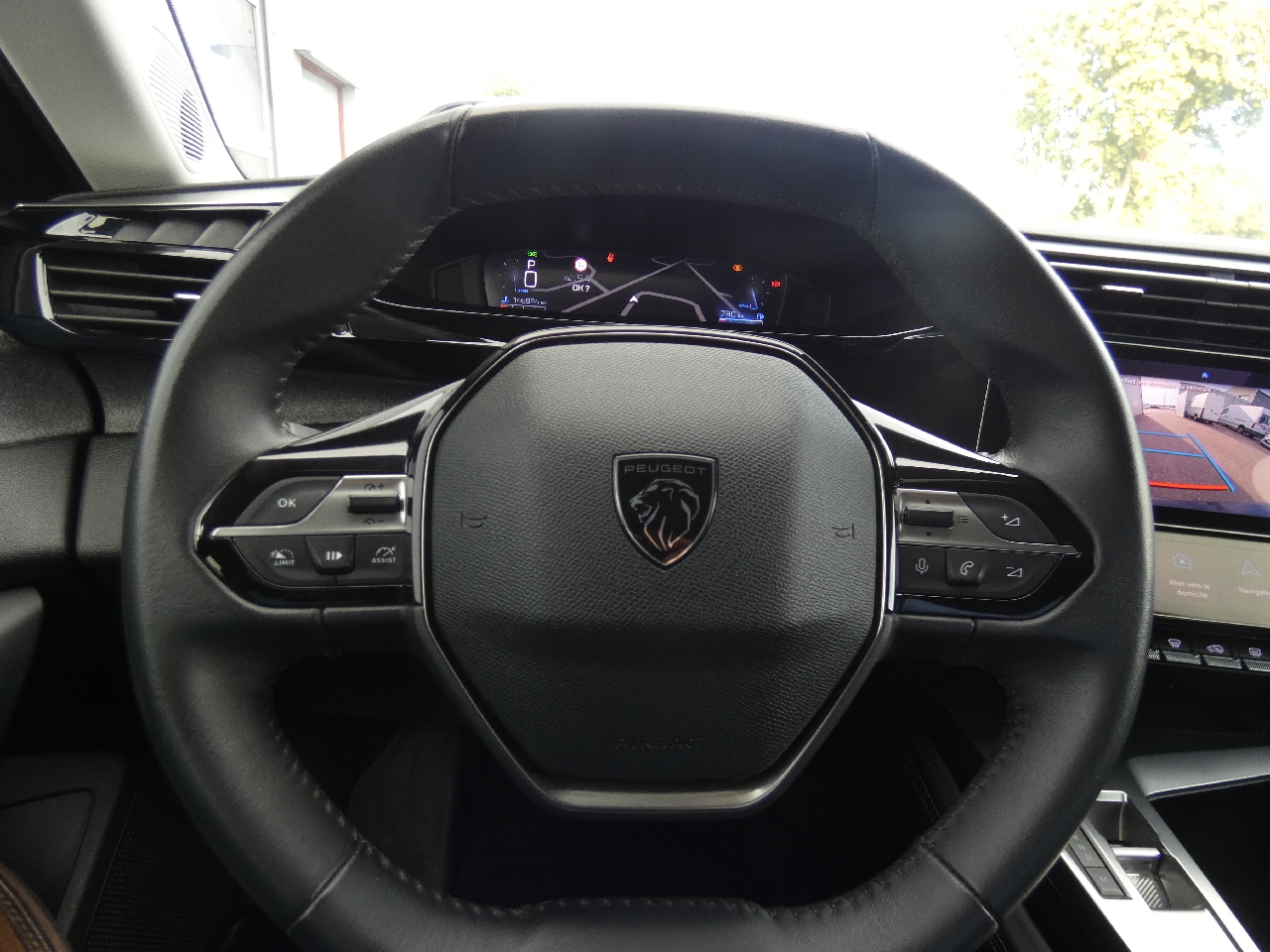 2 prises USB sur console AV, 2 prises USB-C à l'AR, 2 prises USB-C à l'AV, 2 télécommandes 3 boutons, 4 poignées de maintien (2 à l'AV et 2 à l'AR), Accoudoir central AV avec rangement, Active Safety Brake (freinage automatique d'urgence), Aide au stationnement AR, Aide au stationnement AV, Air conditionné automatique bi-zone, Air Quality System (sonde de pollution, couplée à un filtre à charbon actif Haute Efficacité), Airbags frontaux conducteur et passager adaptatifs (passager neutralisable par clé), Alerte active de franchissement involontaire de ligne et bas côté, Alerte attention conducteur, Allumage automatique des feux de croisement, Banquette AR rabattable 40-20-40 déverrouillable depuis le coffre, Calandre AV Noir avec inserts chromés et écopes Noir, Caméra de recul, Ceintures de sécurité AR 3 points à enrouleur (x3) avec prétensionneurs et limiteurs d'effort aux places latérales, Ceintures de sécurité AV 3 points à enrouleur, avec prétensionneurs et limiteurs d'effort, Ceintures de sécurité AV 3 points à enrouleur, Ciel de pavillon clair, Commutation automatique des feux de route, Coques de rétroviseurs extérieurs Noir Brillant, Démarrage mains libres, Détection de sous gonflage, Diffuseurs d'air AR, Direction assistée électrique, Ecran central tactile 10", ESP avec aide au démarrage en pente, Essuie-vitre AV à déclenchement automatique, Feux diurnes à LED sous projecteurs nouvelle signature Peugeot, Fixations pour 2 sièges enfants ISOFIX, aux places AR, inclus Top Tether, Fonction Mirror Screen (Apple CarPlay/Android Auto) sans fil, Frein de stationnement électrique, Garnissage tri-matières TEP/Tissu Falgo, Garnissage tri-matières TEP/Tissu Falgo, surpiqûres Bleu, Jantes alliage 17'' Calgary diamantées, Jupe AR Noir Brillant avec décors chromés, Kit de dépannage de pneumatique : compresseur 12 volts, Lécheurs de vitres latérales Noir Brillant, Lève-vitres électriques AV et AR et séquentiels avec anti-pincement, Miroirs de courtoisie éclairés, Navigation connectée, Navigation connectée avec écran central tactile 10'' et écran avec i-Toggles virtuels personnalisables. Reconnaissance vocale en langage naturel., Navigation connectée avec écran central tactile 10'' et écran avec iToggles virtuels personnalisables. Reconnaissance vocale en langage naturel., Pack Safety Plus, Pare-brise feuilleté acoustique, Pare-brise teinté, PEUGEOT Connect SOS & Assistance, Peugeot i-Cockpit avec combiné d'instrumentation numérique 10'' personnalisable, Planche de bord avec jonc transversal chromé et décor textile Texa, Plancher de coffre 2 positions, Prise 12 V à l'AV, Prise 12 V dans le coffre, Projecteurs Peugeot LED, Réglage lombaire du siège conducteur, Régulateur / Limiteur de vitesse, Rétroviseur intérieur photosensible, Rétroviseur intérieur photosensible sans cadre, Rétroviseurs extérieurs avec éclairage d'accueil à LED et témoins de surveillance d'angles morts, Rétroviseurs extérieurs électriques, Sélecteur mode de conduite Eco et Sport, Sièges AV réglables en hauteur, Smart Multidrive: personnalisation du combiné et éclairage d'ambiance LED intérieur associés aux modes de conduite, Système Start & Stop, Vitres de custode AR et lunette AR chauffante temporisée surteintées, Vitres latérales AR surteintées, Volant avec réglage manuel en hauteur et en profondeur, Volant croûte de cuir, Volant réglable en hauteur et en profondeur