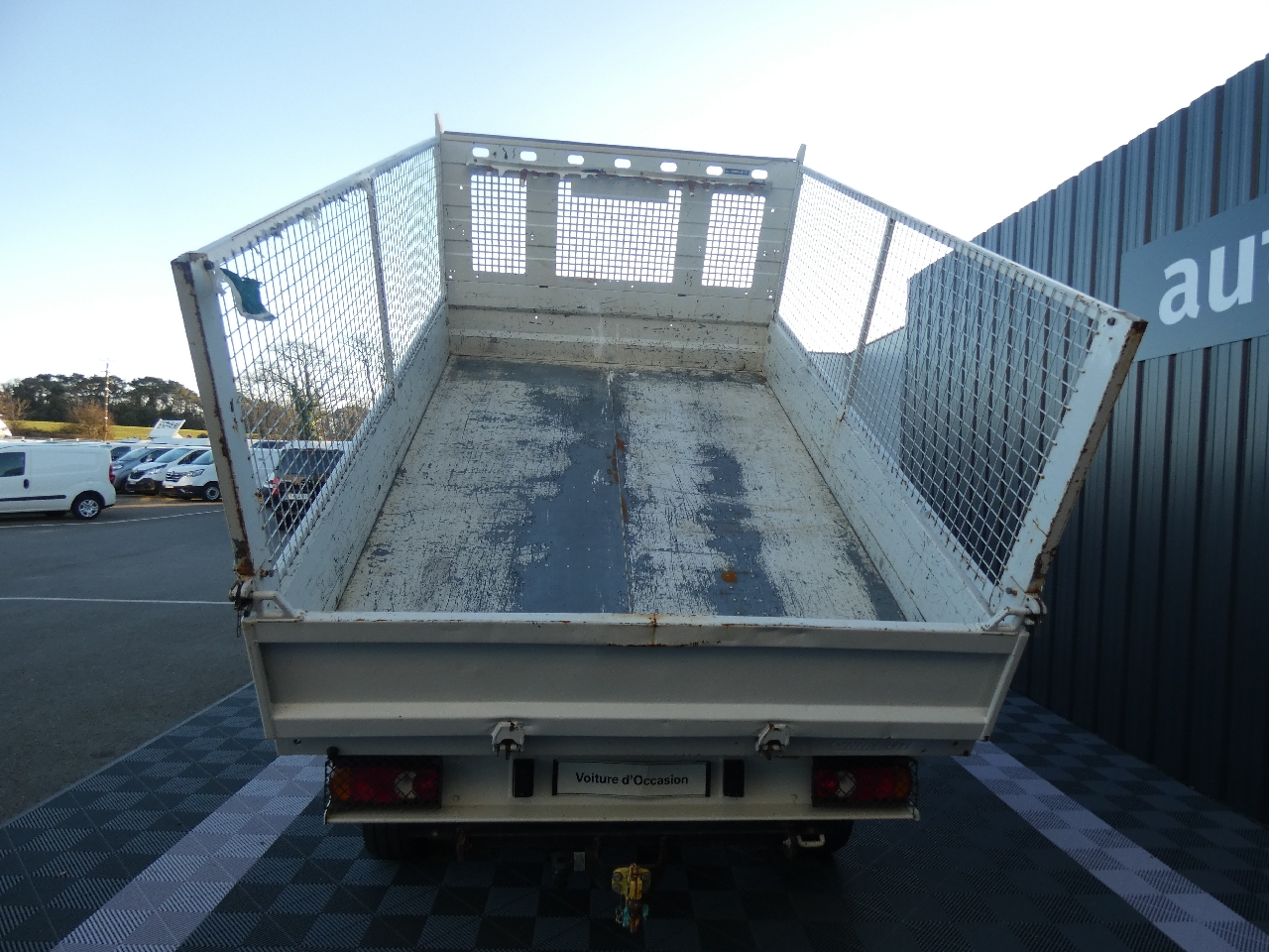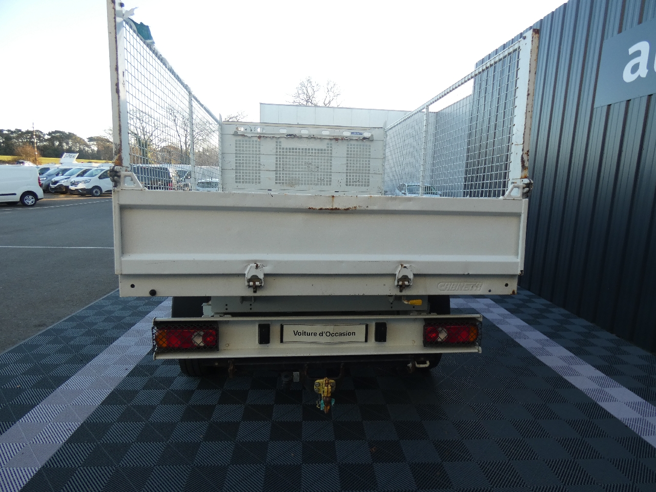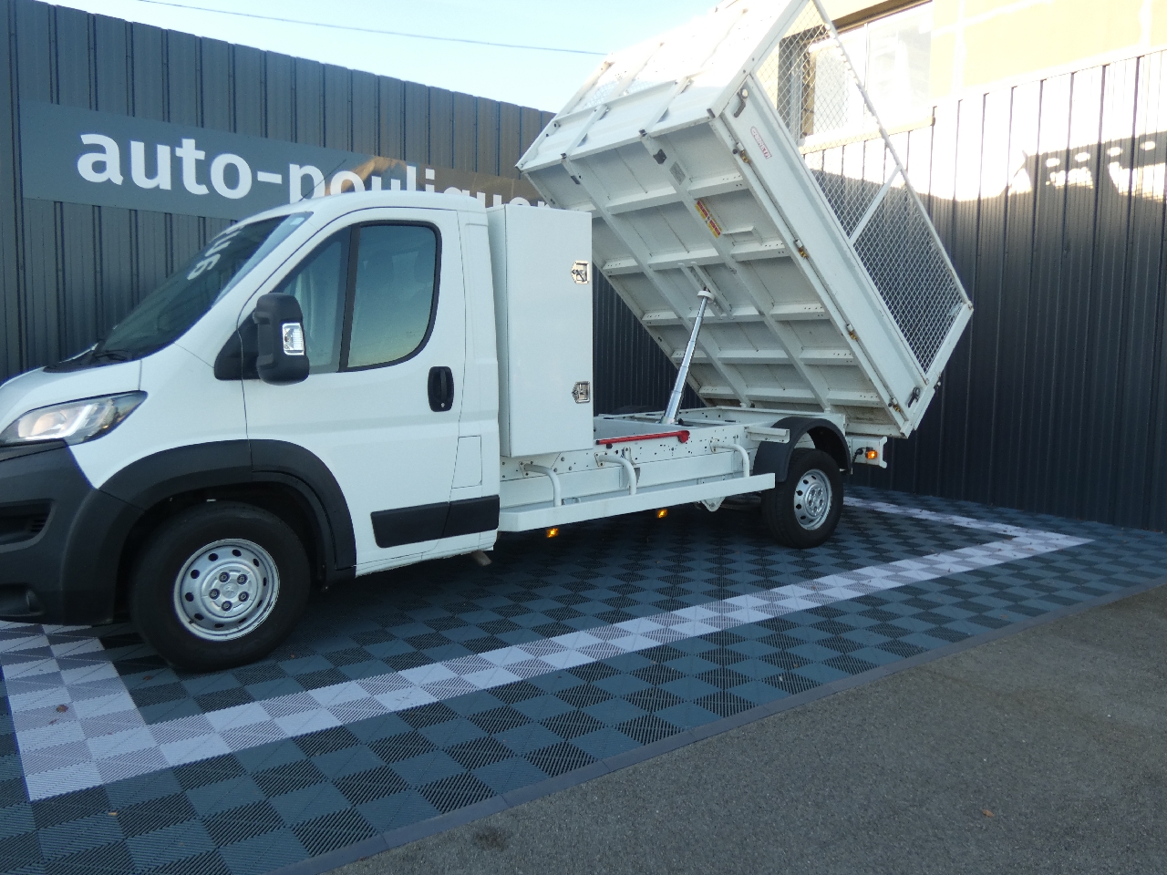 ABS, Aide au Freinage d' Urgence (AFU), Airbag conducteur, Alternateur renforcé, Anti-démarrage électronique, ASR, Attelage mixte Boule et Crochet, Bacs de rangement dans les portes, Baguettes de protection latérales, Banquette passagers 2 places, Benne à basculement AR, Benne Haute Limite Elastique (HLE), Boîte à gants, Boitier télématique KUANTIC, Capucine de rangement, Coffre central fermé à clé sur planche de bord, Condamnation séparée de la cabine avec plip, Contrôle dynamique de stabilité (ESP), Détection de non bouclage de ceinture conducteur, Essuie-vitre AV à 2 vitesses avec intermittence, Feux antibrouillard AR, Grilles de protection des feux AR, Lève-vitres électriques séquentiel montée et descente sans anti-pincement côté conducteur, Lève-vitres électriques séquentiel uniquement à la descente côté passager, Marchepied intégré dans les pare-chocs AV, Ordinateur de bord, Prédisposition radio avec antenne DAB, Prise 12 V dans la cabine, Prise transformateur, Rangement sous les assises AV, Régulateur/ Limiteur de vitesse, Réservoir à carburant de 90 litres, Rétroviseurs extérieurs électriques et chauffants, Rétroviseurs pour largeur carrossable de 2,20m, Roue de secours, Sellerie tissu Darko, Siège conducteur réglable en hauteur à dossier inclinable et réglage longitudinal, Suspension AR renforcée bilame, Teinte opaque Blanc Banquise, Teinte opaque Blanc Icy, Témoin de bouclage de ceinture pour chaque place assise, Témoin et signal sonore de non-bouclage de ceinture conducteur, Traverse AR d'articulation, Traverse pied de vérin en tube, Vitres teintées, Volant réglable en profondeur