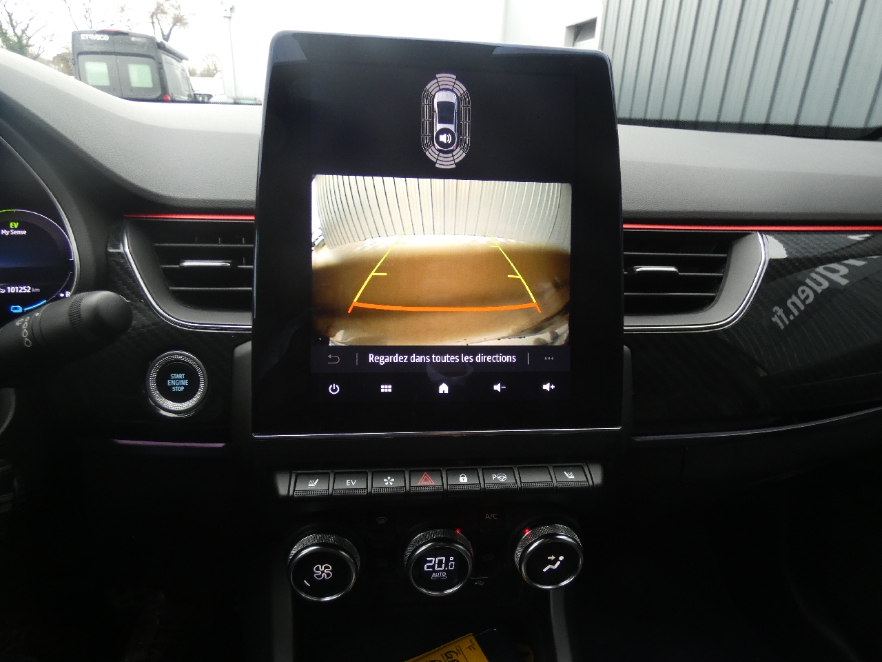 Aérateurs aux places AR, Airbag passager déconnectable, Airbags frontaux conducteur et passager adaptatif, Airbags rideaux de têtes aux places AV et AR, Alerte collision AR et freinage actif d'urgence AR piéton, Alerte d'oubli de ceinture de sécurité, Alerte de distance de sécurité, Alerte franchissement de ligne, Allumage automatique des phares et des essuis-glace avec capteur de pluie et de luminosité, Antiblocage des roues ABS, Appellation Renault, Appuie-têtes AV / AR réglables en hauteur, Assistance au freinage d'urgence (A.F.U.), Avertisseur de sortie de stationnement, Banquette AR avec accoudoir central, Boite de vitesse E shifter, Boitier connect AIVC, Bouton d'appel d'urgence R-Call, Caméra de recul, Cartographie France, Cartographie Standard, Chargeur de téléphone à induction, Climatisation automatique, Commutation automatique des feux de route/croisement, Compartimentage de coffre, Condamnation centralisée des portes, Coques de rétroviseurs extérieures noires (avec Toit Noir), Design exterieur RS-Line, Design intérieur RS-Line, Détecteur d'angle mort, Détection d'obstacle latérale, Easy Park Assist, Eclairage d'ambiance, Eclairage des miroirs de courtoisie conducteur et passager, Feux de jour à LED avec signature lumineuse C-Shape, Frein de parking assisté automatique avec Auto hold, Freinage actif d'urgence avec détection piétons et cyclistes, Harmonie intérieure foncée, Indicateur de changement de vitesse, Jantes alliage 18" Silverstone diamantées exclusives R.S. Line avec insert Rouge, Kit de gonflage et de réparation des pneumatiques, Lève-vitres AR électriques avec fonction anti-pincement, Lève-vitres AV électriques à impulsion, Lunette AR chauffante, Monte banalisée, Pneu standard, Programme eco mode, Projecteurs AV full LED Pure Vision, Purificateur d'air, Régulateur de vitesse Adaptatif, Renault Multi-sense, Répétiteurs de clignotant intégrés aux rétroviseurs, Rétroviseur intérieur électrochrome sans contour, Rétroviseurs extérieurs dégivrants, réglables et rabattables électriquement, Sellerie mixte cuir-suédine surpiqués rouge, Sièges AV chauffants, Sièges AV électriques, Signature R.S. Line, Système de surveillance de la pression des pneus, Système ISOFIX (i-Size) aux places latérales AR et passager AV, Système multimédia EASY LINK avec écran tactile 9,3", navigation, Bluetooth, Tableau de bord avec écran numérique et personnalisable 10.2", Vitres et lunette AR surteintées, Volant chauffant, Volant cuir pleine fleur