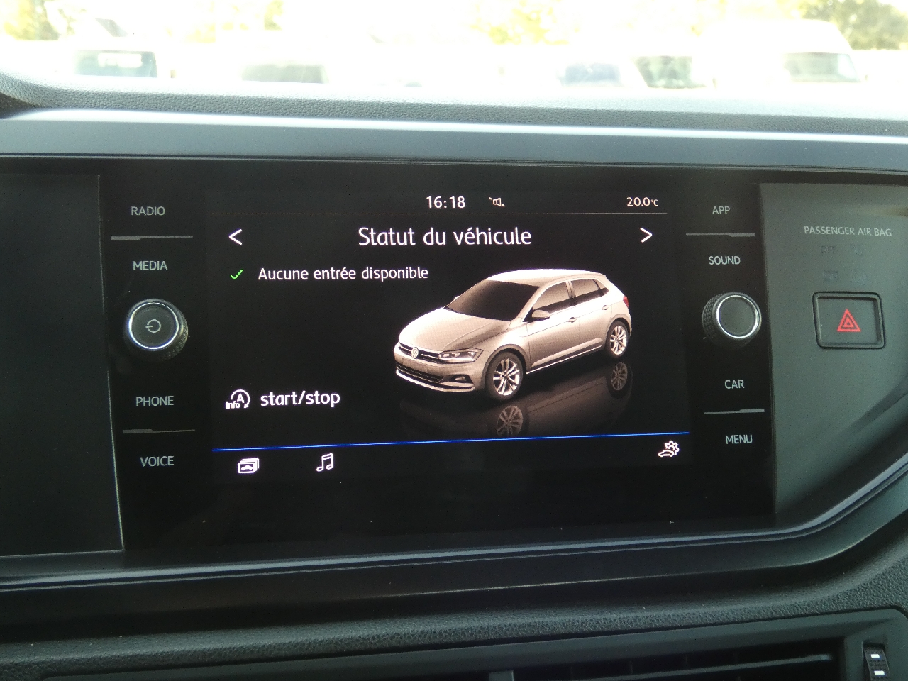 Airbags frontaux AV conducteur et passager (Airbag passager désactivable par clé), Airbags latéraux AV, Airbags rideaux AV/AR, Alerte de perte de pression des pneus, Allumage automatique des projecteurs avec feux de jour à LED et fonction "Coming/Leaving Home", Antenne AR de pavillon, App-Connect, Application Volkswagen Connect, Applications décoratives "Noir mat" sur la console centrale, Appuis-tête (3) et ceintures de sécurité à 3 points (3) sur la banquette AR, ASR, Avertisseur sonore de non-extinction des phares et de non bouclage des ceintures de sécurité (conducteur et passager), Bacs de rangement dans toutes les portes, à l?AV avec porte-boisson, Blocage de différentiel EDS, Boitiers des rétroviseurs extérieurs couleur carrosserie, Boitiers des rétroviseurs extérieurs Noirs, Cache-bagages, Car-Net "App-Connect", Ceintures de sécurité AV 3 points à enrouleur avec prétensionneur, Circuit d'éclairage automatique des phares avec éclairage jour LED, Clignotants confort (1 impulsion = 3 clignotements), Clignotants latéraux intégrés dans les rétroviseurs extérieurs, Climatisation manuelle "Climatic", Correcteur électronique de trajectoire ESP avec amplificateur de freinage d?urgence, Déflecteur de toit intégré, Direction assistée, Dispositif de fixation pour 2 sièges enfants suivant norme Isofix aux places AR, Disques de frein ventilés à l'AV, Eclairage blanc sur les instruments réglable en intensité, rouge sur les commandes, Eclairage du coffre à bagages, Essuie-glace AR avec commande d'intermittence et lave-glace, Essuie-glace AV avec commande d'intermittence à 4 positions et lave-glace, Extension de garantie 3 ans (2 ans + 1 an supplémentaire) ou 30000 kms, Fatigue Détection : système de détection de fatigue du conducteur, Feux antibrouillard AR, Filtre à pollen et à poussière, Front Assist : système de surveillance périmétrique avec fonction de secours en ville, Hill-Hold : Assistant au démarrage en côte grâce à une fonction anti-recul, Instrumentation avec tachymètre électronique, Interface Bluetooth pour téléphone portable, Interface USB également pour iPod/iPhone, Jantes en acier 5, Kit de dépannage en cas de crevaison incluant compresseur 12 V et produit colmatant, Lève-vitres AV électriques, Miroir de courtoisie sur le pare-soleil passager, Motorisations respectant les normes Euro 6, Ordinateur de bord "Plus", Pare-chocs dans la couleur de la carrosserie, Peinture unie Gris Urano, Plafonnier à temporisation à l'AV avec contacteur de portière, Pneus à résisistance au roulement optimisée 185/65 R15 88H, Poignées de portes extérieures couleur carrosserie, Poignées de portes extérieures noires, Porte-boissons (2) à l'AV, Prise 12 V à l' AV, Projecteurs et clignotants regroupés dans un bloc optique avec vitre transparente, Réception de radio numérique DAB+ (Digital Audio Broadcasting), Régulateur électronique de couple MSR, Régulateur et limiteur de vitesse, Rétroviseur extérieur asphérique côté conducteur, Rétroviseur intérieur de sécurité à réglage jour/nuit manuel, Rétroviseurs extérieurs, réglables et dégivrants électriquement, Sellerie en tissu "Basket", Sellerie en tissu "Beats Audio", Siège conducteur réglable en hauteur, Support pour ticket sur le pare-soleil conducteur, Système Audio & Infotainment "Composition Media", Système de freinage anti multicollision : ce dispositif freine automatiquement le véhicule après un premier choc afin de limiter le risque de multicollision, Système de ventilation / chauffage 4 vitesses avec commande de fonctionnemment en circuit fermé, Système Start-Stop de coupure du moteur à l'arrêt et système de récupération d'énergie en décélération, Témoins de contrôle et indicateur d'intervalle de révision, Verrouillage centralisé à distance, 2 clés pliantes de radiocommande fournies, Vitres athermiques teintées vertes, Volant multifonction à 3 branches, Volant réglable en hauteur et en profondeur