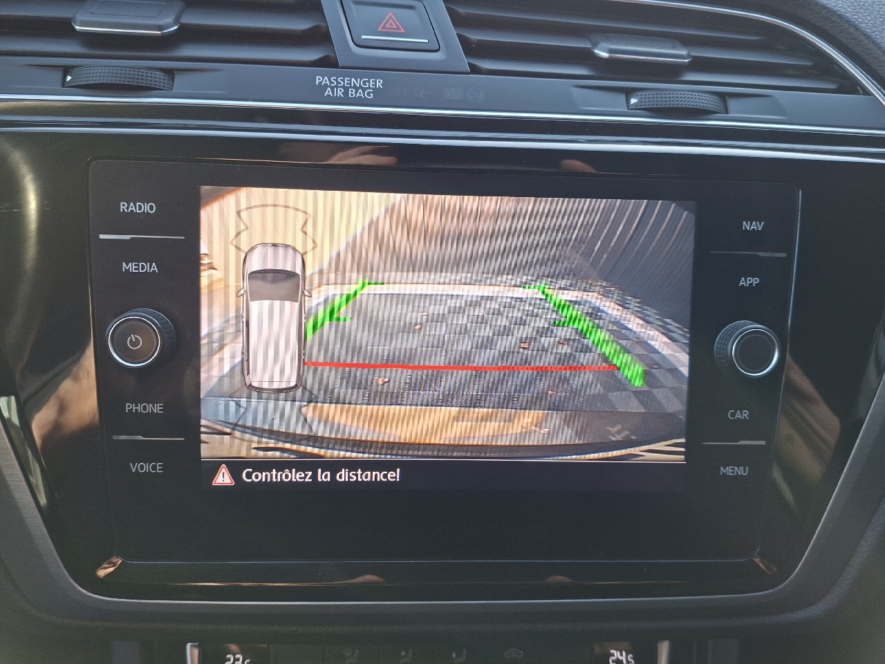 - Aide au stationnement AV/AR avec signaux sonores et visualisation de la distance des obstacles sur l'écran