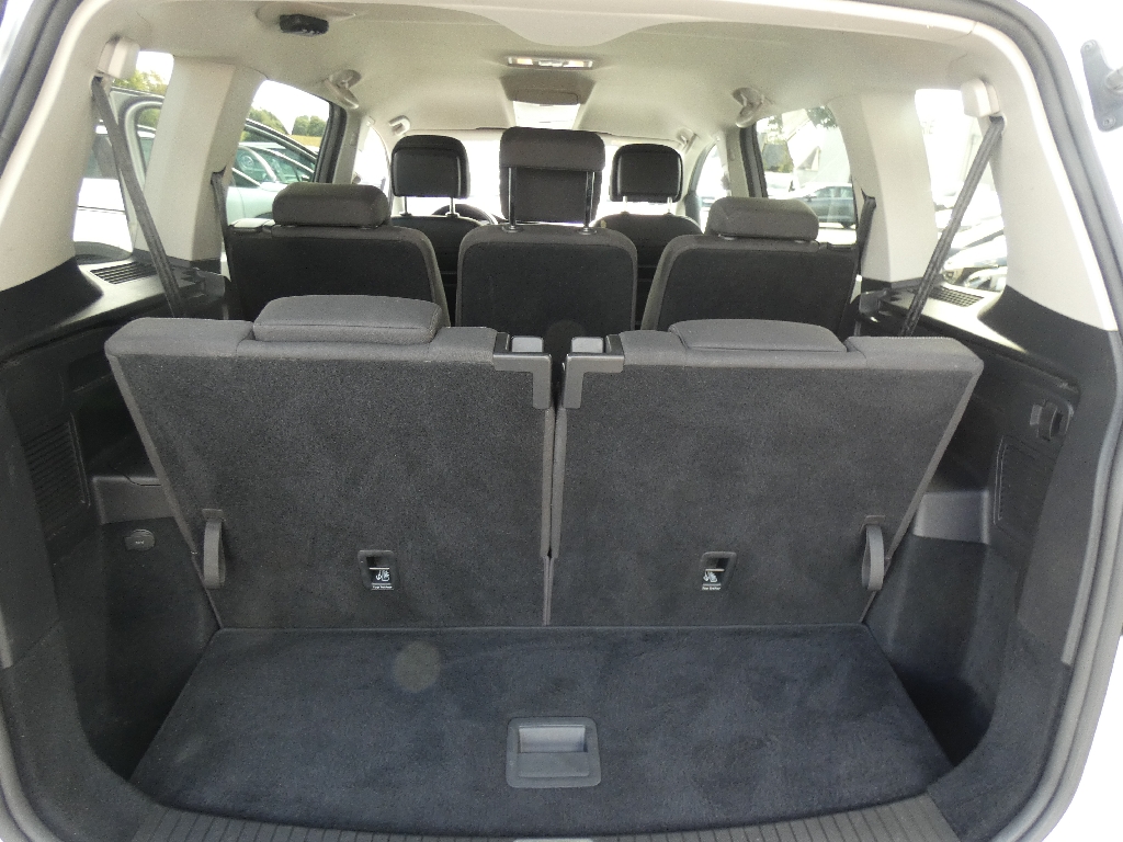 2 spots de lecture AV et 2 spots de lecture AR, 7 places, Accoudoir central AV réglable avec compartiment de rangement, Activation automatique des feux de détresse lors d'un freinage d'urgence, Aide au stationnement AV/AR avec signaux sonores et visualisation de la distance des obstacles sur l'écran, Airbag de genoux conducteur, Airbags frontaux AV (Airbag passager désactivable par clé), Airbags rideaux pour 3ème rangée, Airbags rideaux pour les 1ère et 2ème rangées, Alerte de perte de pression des pneus, Appuis-tête (3) réglables en hauteur sur la 2ème rangée de sièges, Appuis-tête AV réglables en hauteur, Arrière des sièges conducteur et passager en simili cuir, Aumônières au dos des sièges conducteur et passager AV, Avertisseur sonore et témoin d'oubli du port de la ceinture de sécurité à l'AV et témoin d'oubli du port de la ceinture de sécurité pour la 2ème rangée, Boîte à gants réfrigérée, Calandre noir avec 3 lamelles chromées, Caméra de recul avec visualisation de la zone située à l'AR du véhicule sur l'écran de la radio ou de la radionavigation, Ceintures de sécurité (3) trois points sur la 2ème rangée de sièges, Ceintures de sécurité AV 3 points à enrouleur réglables en hauteur avec prétensionneurs, Climatisation automatique "Pure Air Climatronic" trois zones, Compartiment de rangement à gauche du volant, Compartiment de rangement sous la planche de bord, Compartiment de rangement sur la planche de bord avec trappe, Connecting Box au dessous de la boite à gants, Console de pavillon avec un grand compartiment de rangement (incompatible avec le toit ouvrant), Correcteur électronique de trajectoire ESP, Couvre-coffre enroulable et amovible, Direction électromécanique à assistance variable en fonction de la vitesse, Dossier du siège passager rabattable (Fold Flat), Eclairage à LED de la plaque d'immatriculation AR, Eclairage de jour, Entourage des aérateurs chromées, Essuie-glace AV avec commande d'intermittence, Fatigue Détection : système de détection de fatigue du conducteur, Frein à main électrique, Hill-Hold : Assistant au démarrage en côte grâce à une fonction anti-recul, Interface Bluetooth pour téléphone portable, Jantes en alliage "Trondheim" 6.5Jx16"et pneumatiques 205/60 R16, Kit de réparation pour crevaison (compresseur 12 V et bombe anti-crevaison), Miroir de courtoisie éclairé sur les pare-soleil, Oeilletons de fixation (4) dans le coffre, Ordinateur de bord Plus, Pack Drive Assist I, Pack Visibilité avec rétroviseurs extérieurs rabattables électriquement, Pare-chocs et boîtier de rétroviseurs extérieurs dans la couleur de la carrosserie, Plafonnier à extinction temporisée, Plancher de coffre modulable, Poignées de portes couleur carrosserie, Porte-bouteille dans toutes les portes (1,5 L à l?AV et 1 L à l?AR), Pre Safe Assist - Système proactif de protection des passagers, Préparation pour fixation de sièges enfants suivant norme "Isofix" pour tous les 3 sièges de la 2ème rangée, Prise 12 V dans le coffre, Prise USB compatible i-Phone, i-Pad, Projecteurs antibrouillard AV avec éclairage statique d'intersection, Protection antidémarrage, Rampe de pavillon anodisées, Régulateur de vitesse adaptatif ACC, Rétroviseurs extérieurs incluant le rappel de clignotant, Rétroviseurs extérieurs rabattables électriquement, Rétroviseurs extérieurs réglables électriquement et dégivrants, asphérique côté conducteur, Sellerie en tissu "Lasano", Sièges AV Confort réglables en hauteur avec réglage lombaire, Sièges individuels (3) de la 2ème rangée réglables en longueur (200 mm) et rabattables, Système Audio & Infotainment "Composition Media", Système de freinage anti multicollision : ce dispositif freine automatiquement le véhicule après un premier choc afin de limiter le risque de multicollision, Système de protection évitant l'utilisation d'un mauvais carburant, Système Front Assist : système de freinage automatique en cas de détection d'obstacle, Système Start/Stop automatique et dispositif de récupération de l'énergie de freinage, Tablette pliable au dos des sièges conducteur et passager AV, Tapis de sol AV et AR, Tiroir sous les sièges AV, Triangle de présignalisation, Verrouillage centralisé avec télécommande à fréquence radio par clé rétractable, Vitres AR et lunette AR surteintées à 65 %, Vitres athermiques teintées vertes, Vitres électriques AV et AR, Volant 3 branches en cuir et pommeau de levier de vitesses cuir, Volant cuir multifonctions, Volant réglable en hauteur et en profondeur, Volkswagen e-Pass, XDS : Système agissant comme un différentiel autobloquant électronique permettant une meilleure motricité en courbe grâce à une répartition optimale de la puissance et du couple sur les roues AV